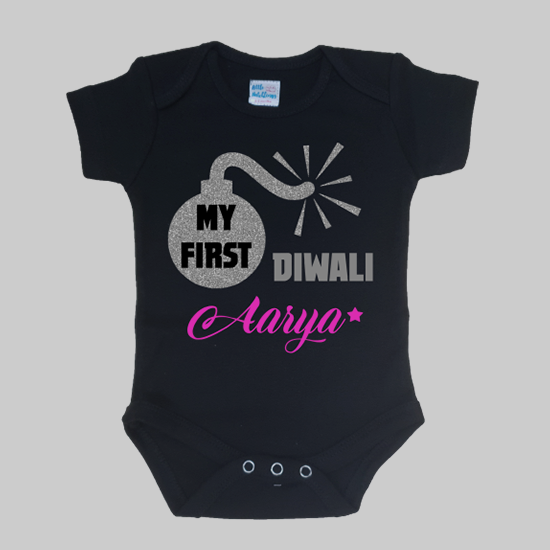 Personalized First Diwali Black (Silver Glitter Bomb) Onesie/Full Romper/Tshirt